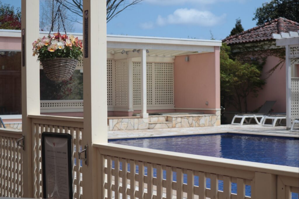 プールサイドを囲む形にカフェがあり、南国リゾートにいるかのようにリラックスして過ごすことができます💓