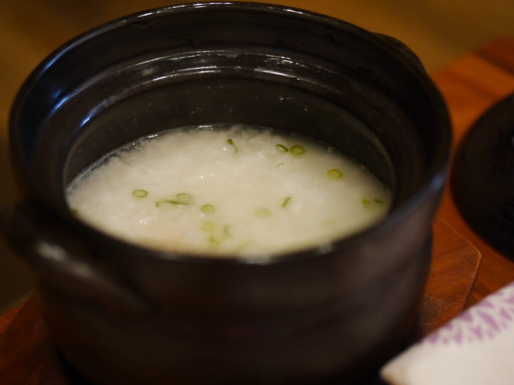 豚の角煮をちびちびかじりながらお粥を頂きました✋