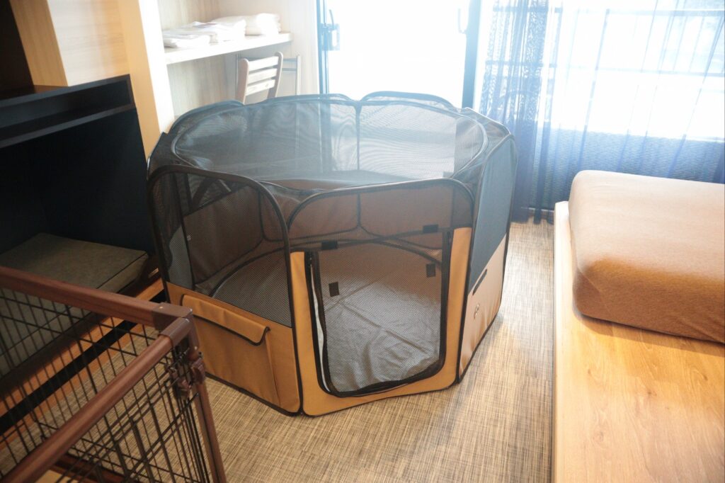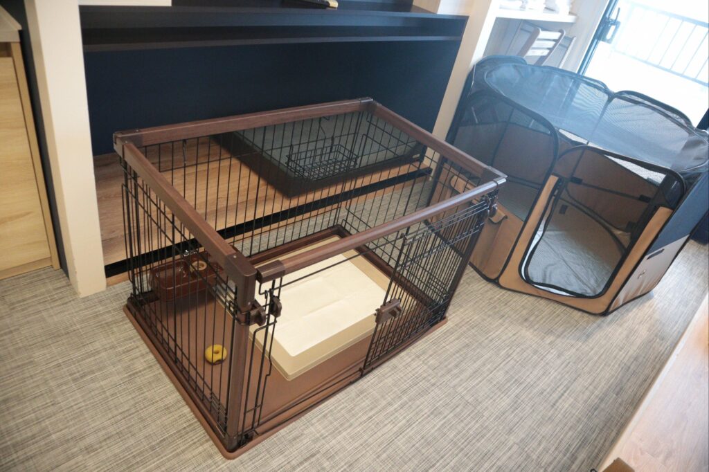 犬用のゲージはなぜか2台セット済み。