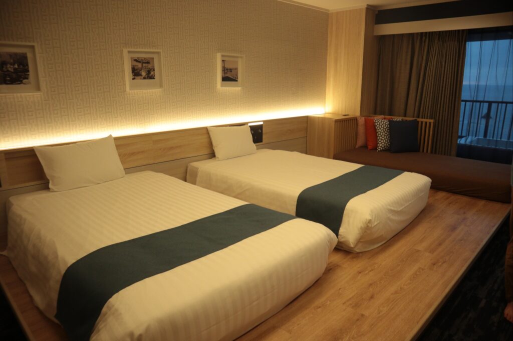 ツインベッドに加えて、カウチソファがあってくつろげましたー♪