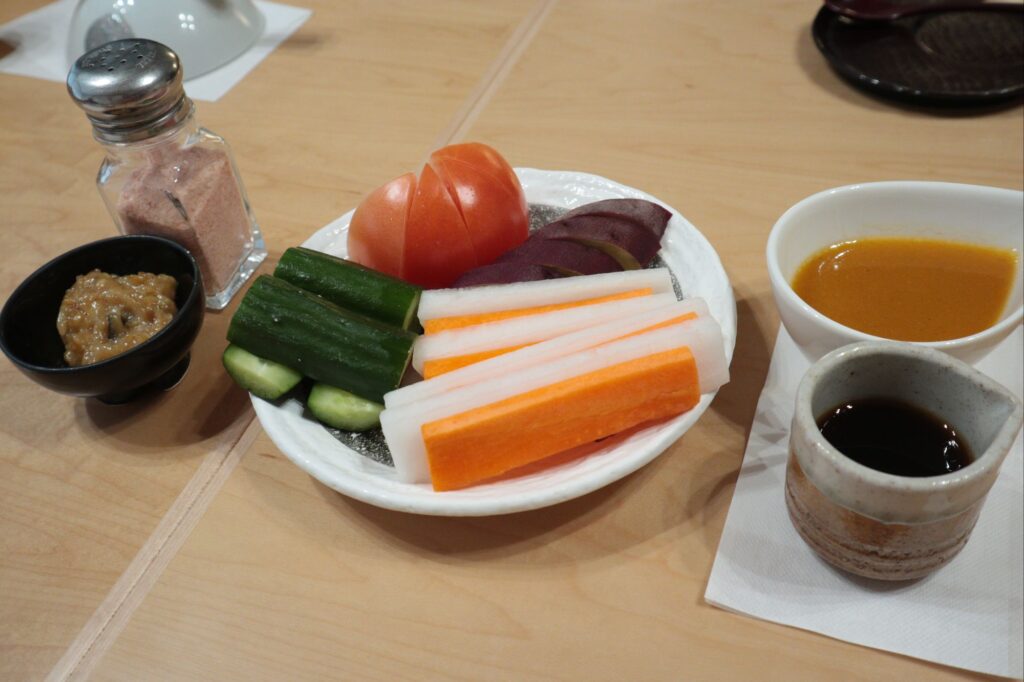 千葉の美味しいお野菜ももろみ味噌をつけていただきました。