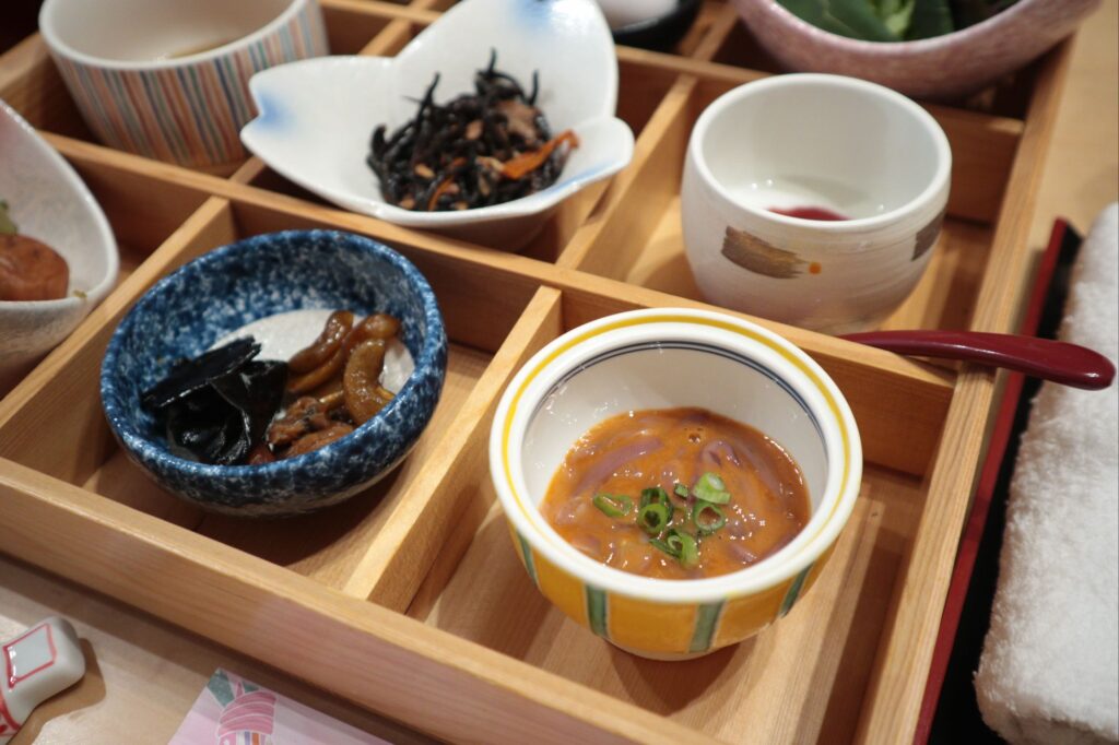 最初に席に着いた時は、このいろいろ乗ったお盆だけだったんです。