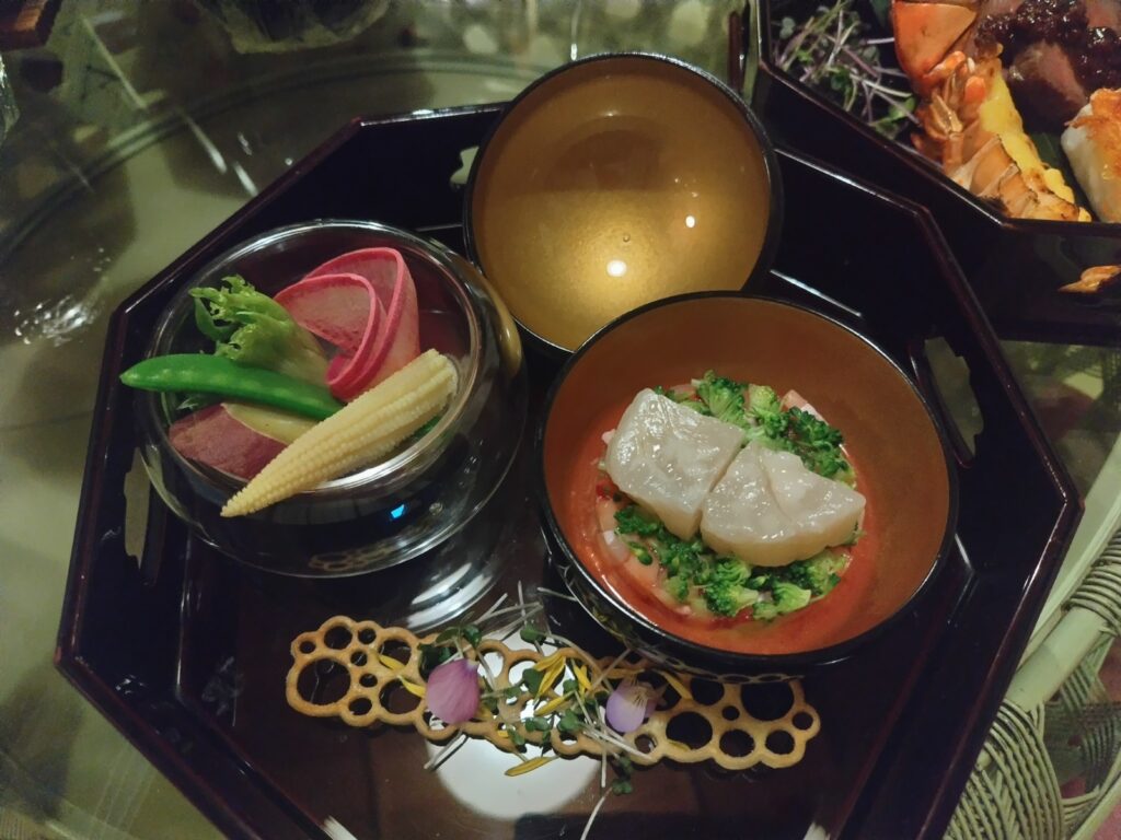 きっとレストランで一皿一皿出されたら美しい盛り付けだったんだろうな~って思うような、付け合わせの花びらなんかも入っていました。