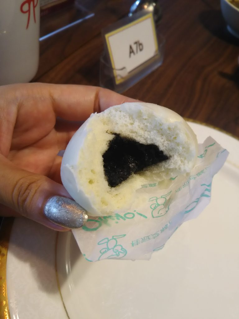 肉まんって説明書きがあったのでパカッと割ってみたら、どうみても黒ゴマあんまんでした。