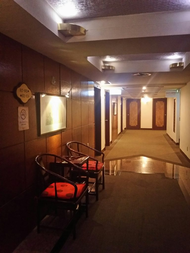 エレベーターを降りるとちょっと古びた感じの廊下が続きます。