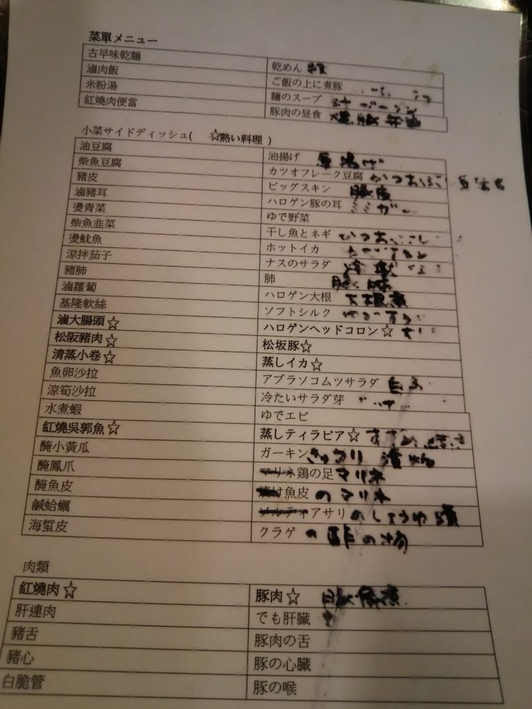 胡通化街米粉湯で食べたメニュー