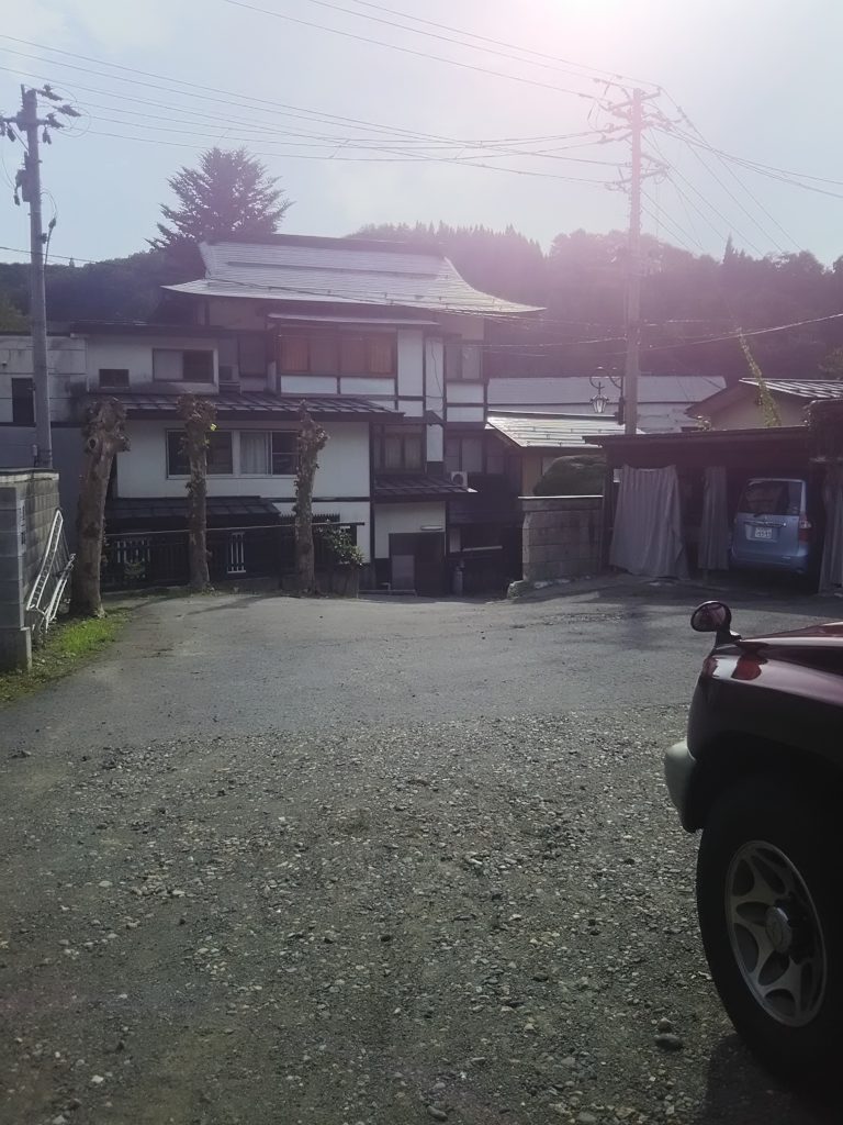 正面に立っている建物が本館で、目の前の砂利の敷地がペット棟の駐車場です。